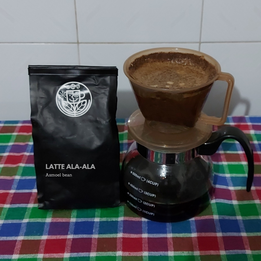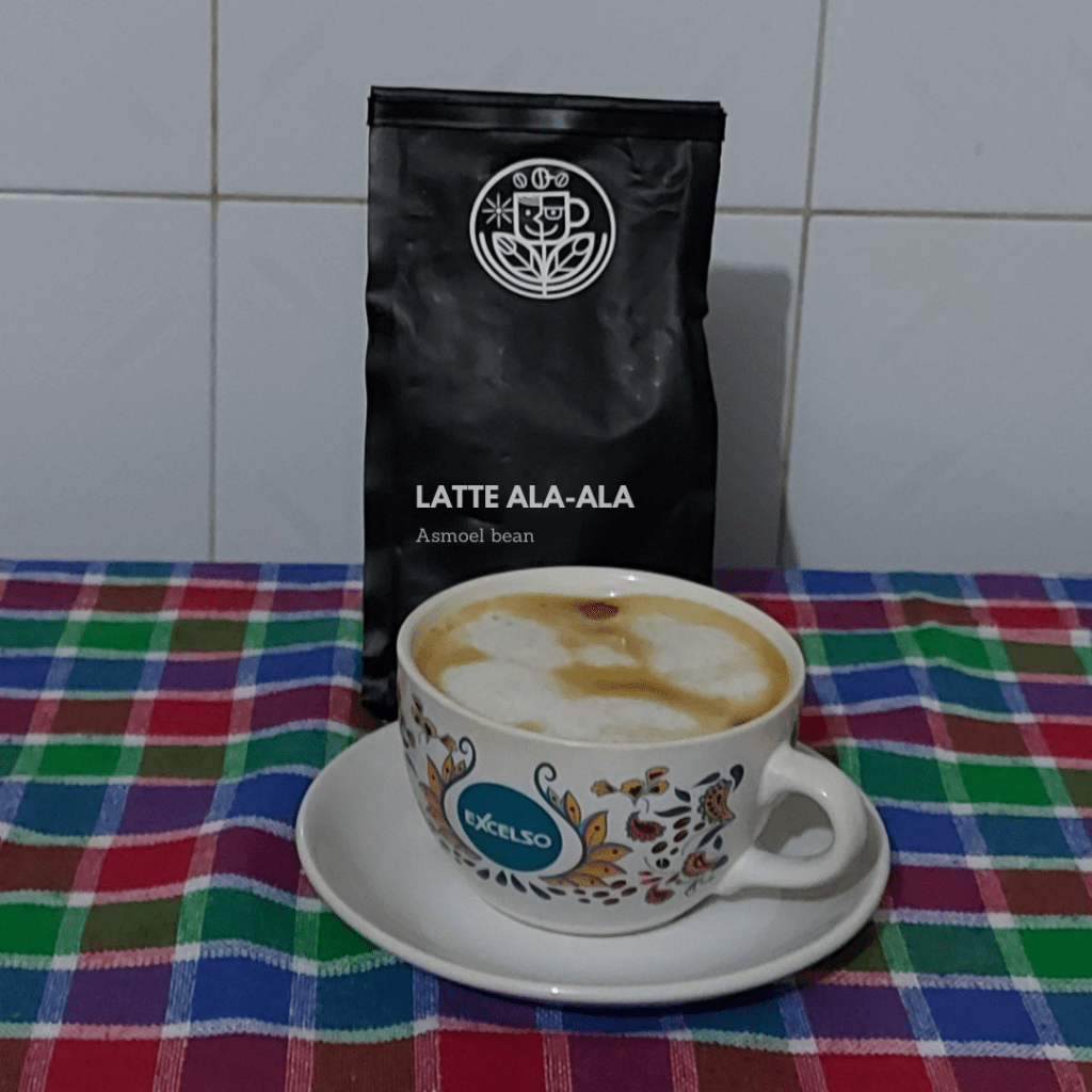 Lalu perlahan tapi pasti, digabung diatas cangkir dan hasilkan sajian kopi kohitala plus foam susu dengan nama LATTE ALA-ALA Asmoel bean. Asmoel bean adalah penjelasan dari mana biji kopi ini hadir, yaitu dari pak Asmoel hehehe… karena tanpa merk maka kita kasih nama saja.