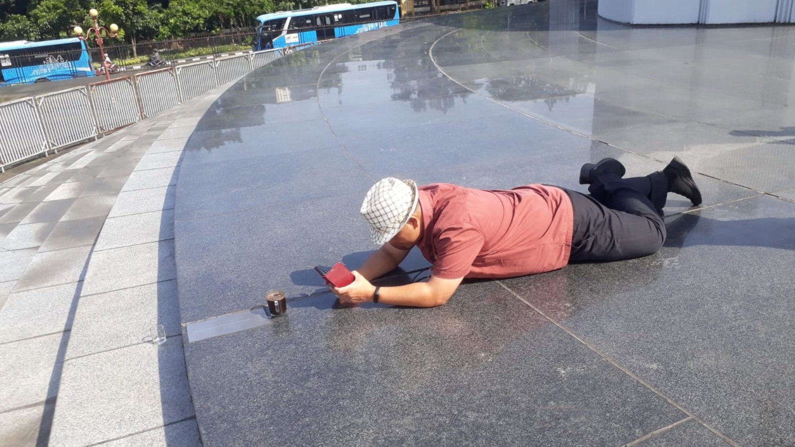 Mau dibalik lagi gelasnya dibawah, nggak lucu ah. Maka dengan konsentrasi penuh gelas dan pisin atau tatakan ini diangkat perlahan dan buka celah gelas dengan hati – hati. Karena jika bukanya terlalu lebar, air kopinya keluar semua dan dijamin akan tumpah karena pisinnya kecil.