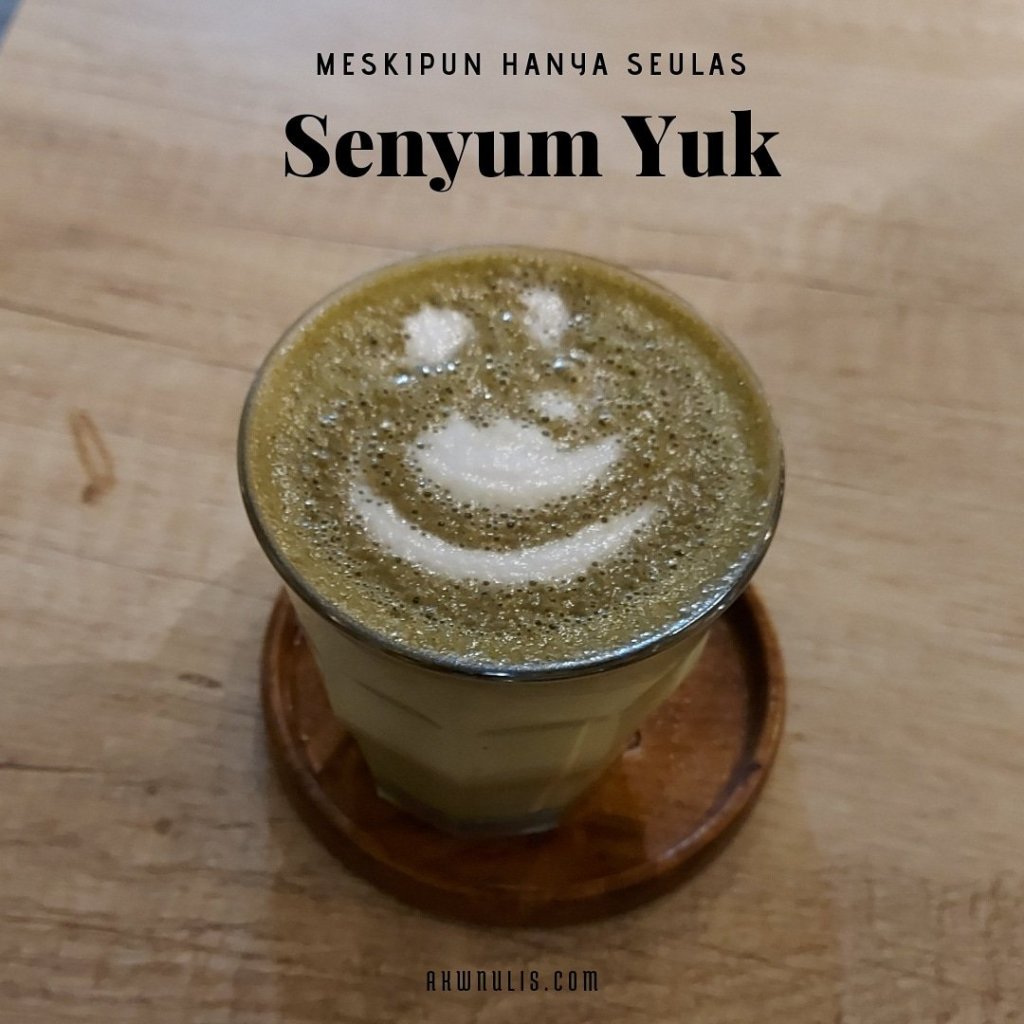 Bisa juga sebagai variasi, nggak musti sajian kopi. Tapi pilihan menu lain yang masih berkerabat dengan kopi di buku menu yang tersaji. Seperti sajian hot matcha kali ini, jangan lupa minta disajikan plus double senyuman. Senyum sang penyaji sekaligus baristi juga seulas siluet senyum di permukaan gelas yang penuh arti.