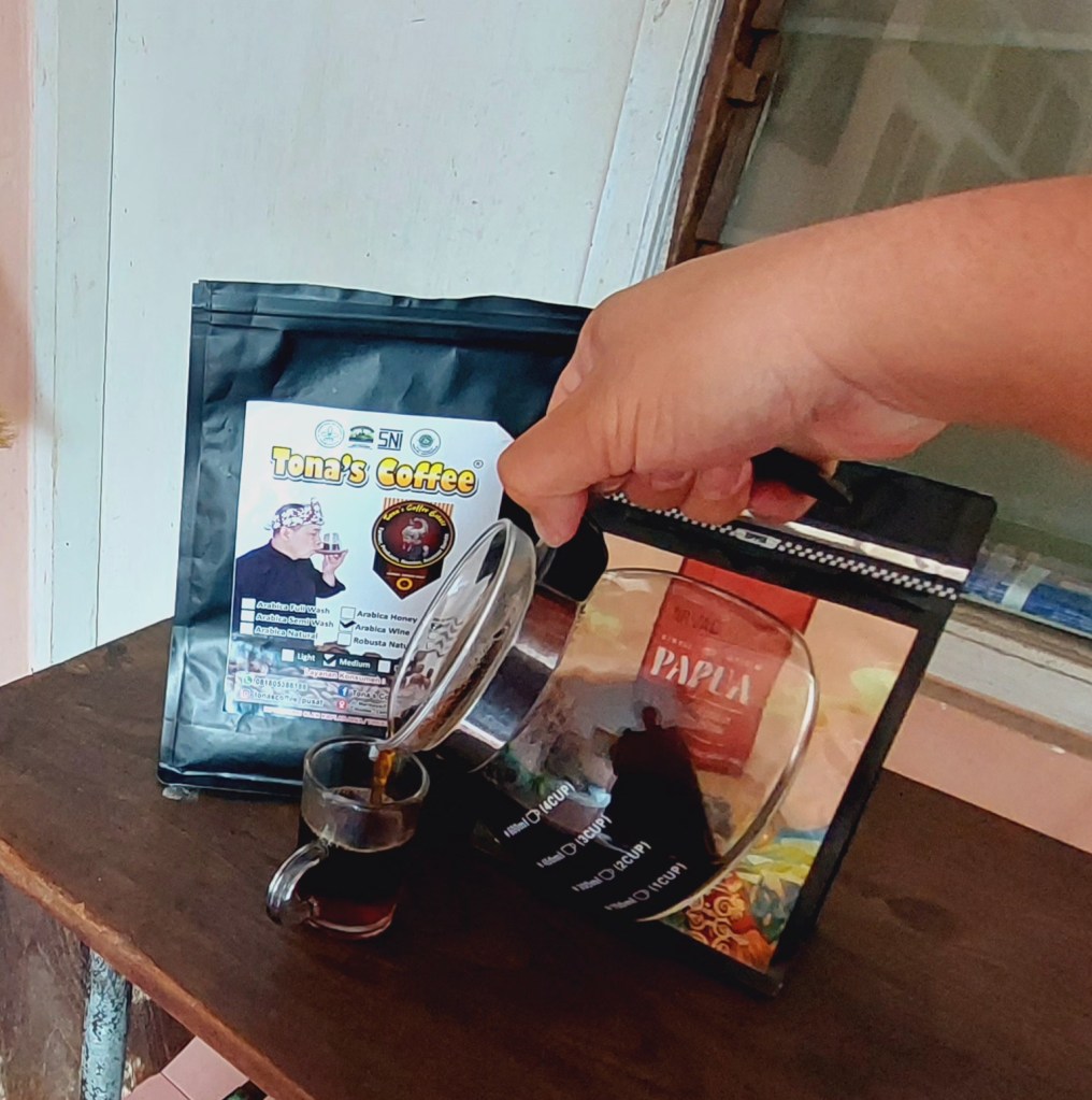 Alhamdulillah akhirnya pembuatan kopi manual tuntas sudah. Disandingkan dengan 2 bungkus biji kopi sebagai sumbernya. Menjadi treatment pengedalian emosi diri dan mengubah kecewa menjadi kecewe…. eh dari kecewa menjadi rasa suka.