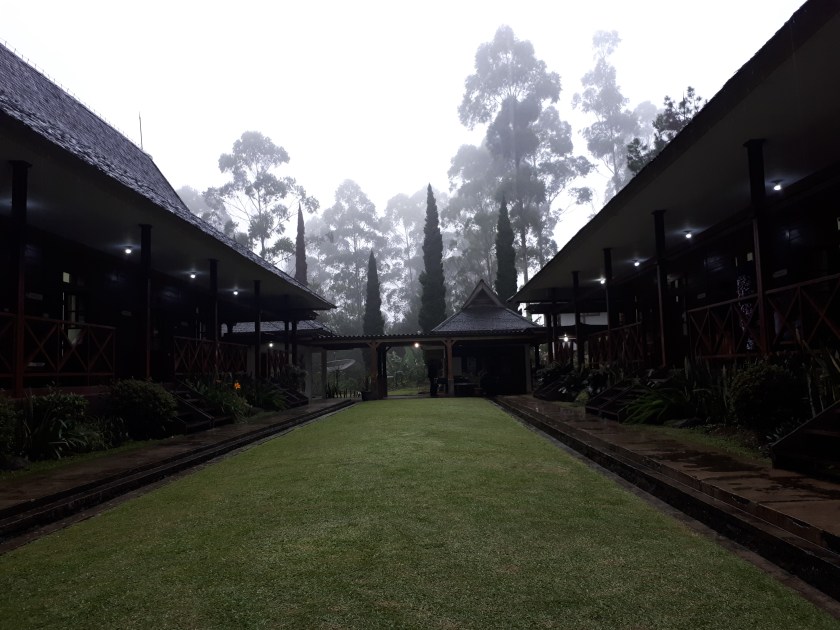 Kembali kepada langkah yang terus menjejak terjalnya punggung bukit serta bercampur tanah merah yang sangat licin sehingga kehati-hatian menjadi keharusan. Meninggalkan teman-teman sekantor yang bersibuk dengan kepentingan masing-masing sebelum sarapan pagi dan kegiatan outbond dimulai.