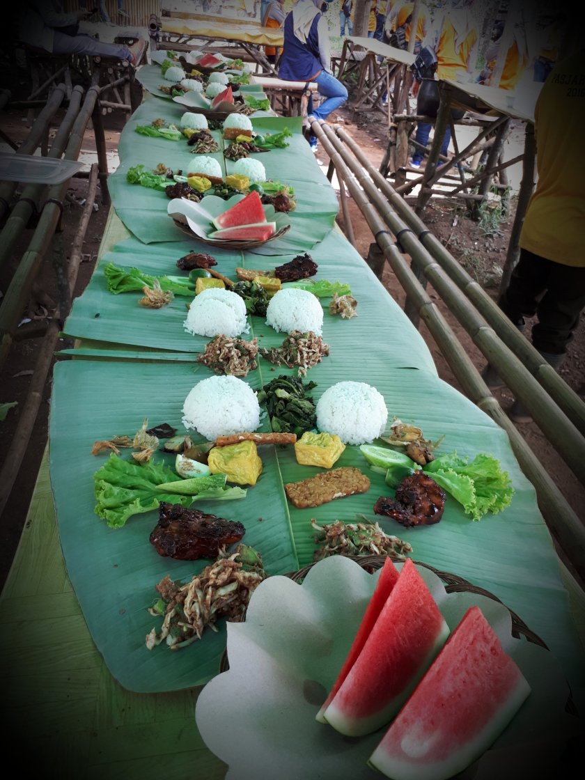 Di sesí makan siang, suasana semarak makan bersama beralas daun pisang di pinggir hutan melengkapi suasana ‘bermain di kebon’ semakin bermakna. Dilanjutkan acara semi formal dalam lomba sambutan serta bernyanyi bersama yang tak kalah ceria….. eh tidak lupa sebelumnya menyegarkan diri di hangatnya air panas sari ater Subang yang mengandung mineral multiguna.