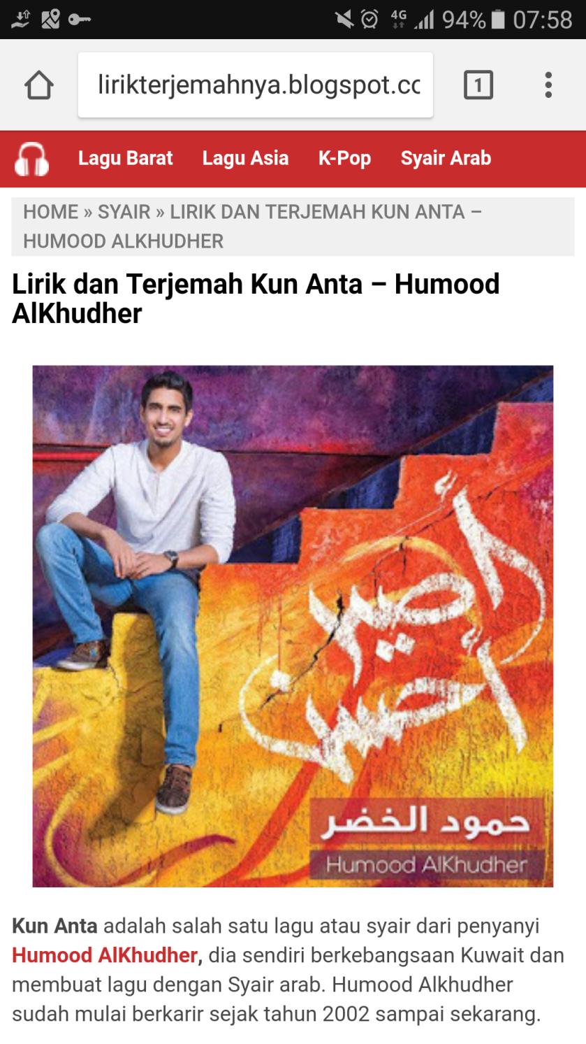 Lirik Arab & Latin Kun Anta – Humood AlKhudher