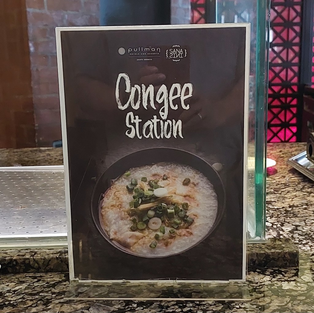 Sebuah tulisan nama makanan terpampang jelas, CONGEE STATION. Atuh langsung terbayang yg lendir hijau tadi… huek huek, pas pisan itu adalah nama lain dalam bahasa inggris adalah bubur. Maklum kosakata terbatas, yang dikenal di memori adalah kata PORRIDGE, sementara kata ini belum pernah bersua, berarti pergaulan bahasa internasionalku memang sangat perlu di upgrade ini mah.
