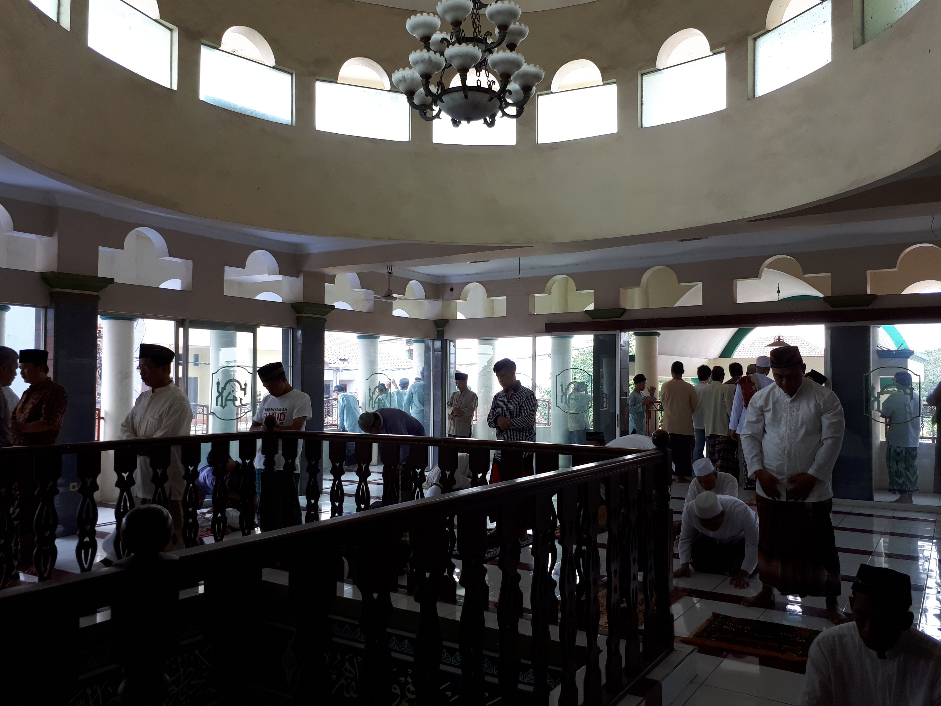 Aku bergerak keluar lingkaran dan menuju halaman mesjid sebelah kiri. Benar saja Mang Yaya sedang lakukan gerakan sholat…. diluar.. di emper mesjid.