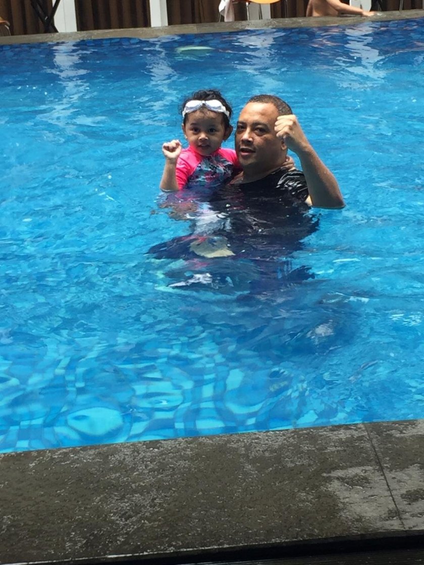 “Hayu ayah, kita berenang” rengekan manja anak 3 tahun dengan gayanya yang ngegemesin. Sulit untuk menolaknya. Apalagi dari kaca depan kamar bisa langsung melihat ke bawah dimana kolam renang berada.