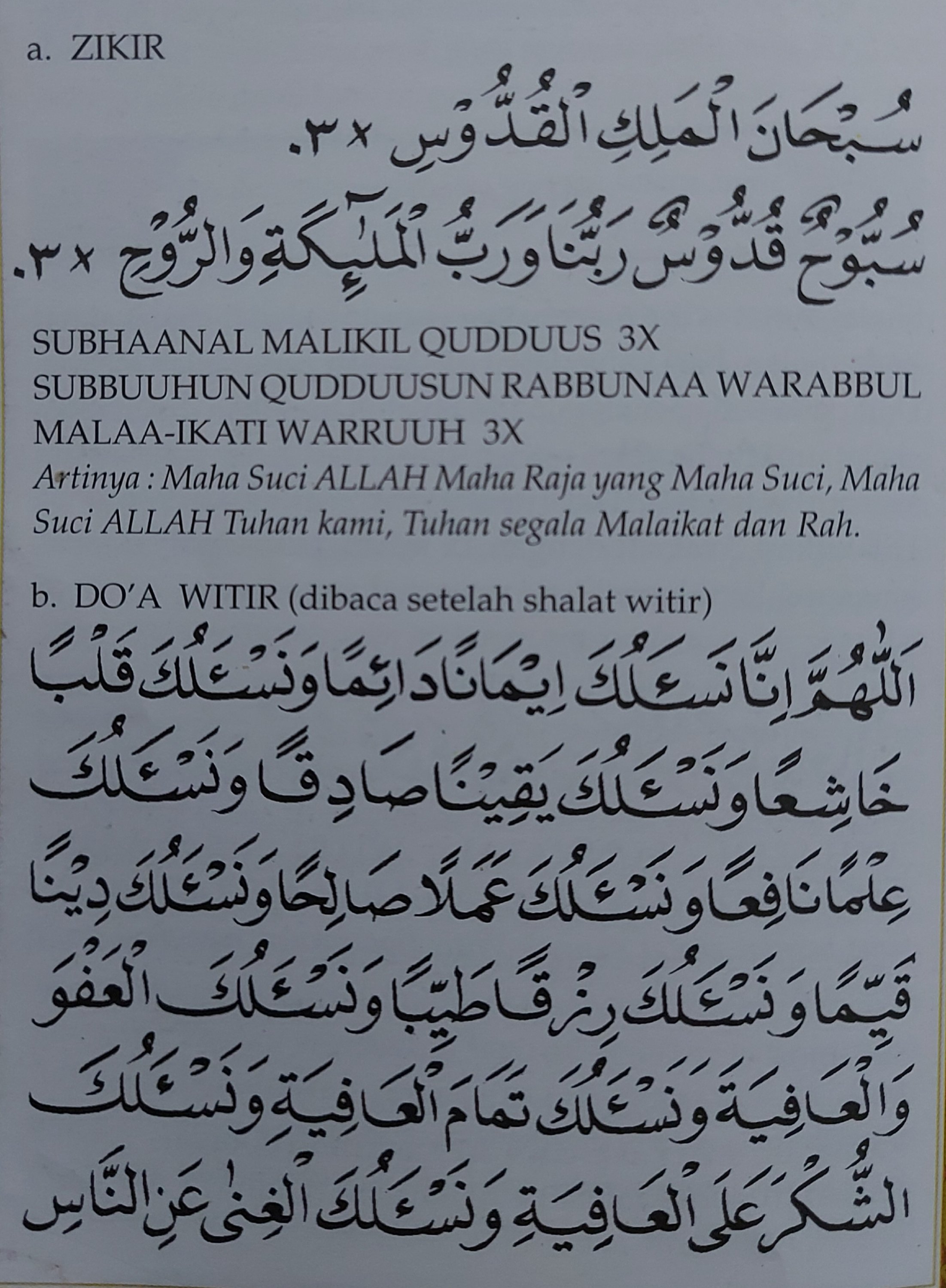 Dzikir & doa setelah shalat witir.