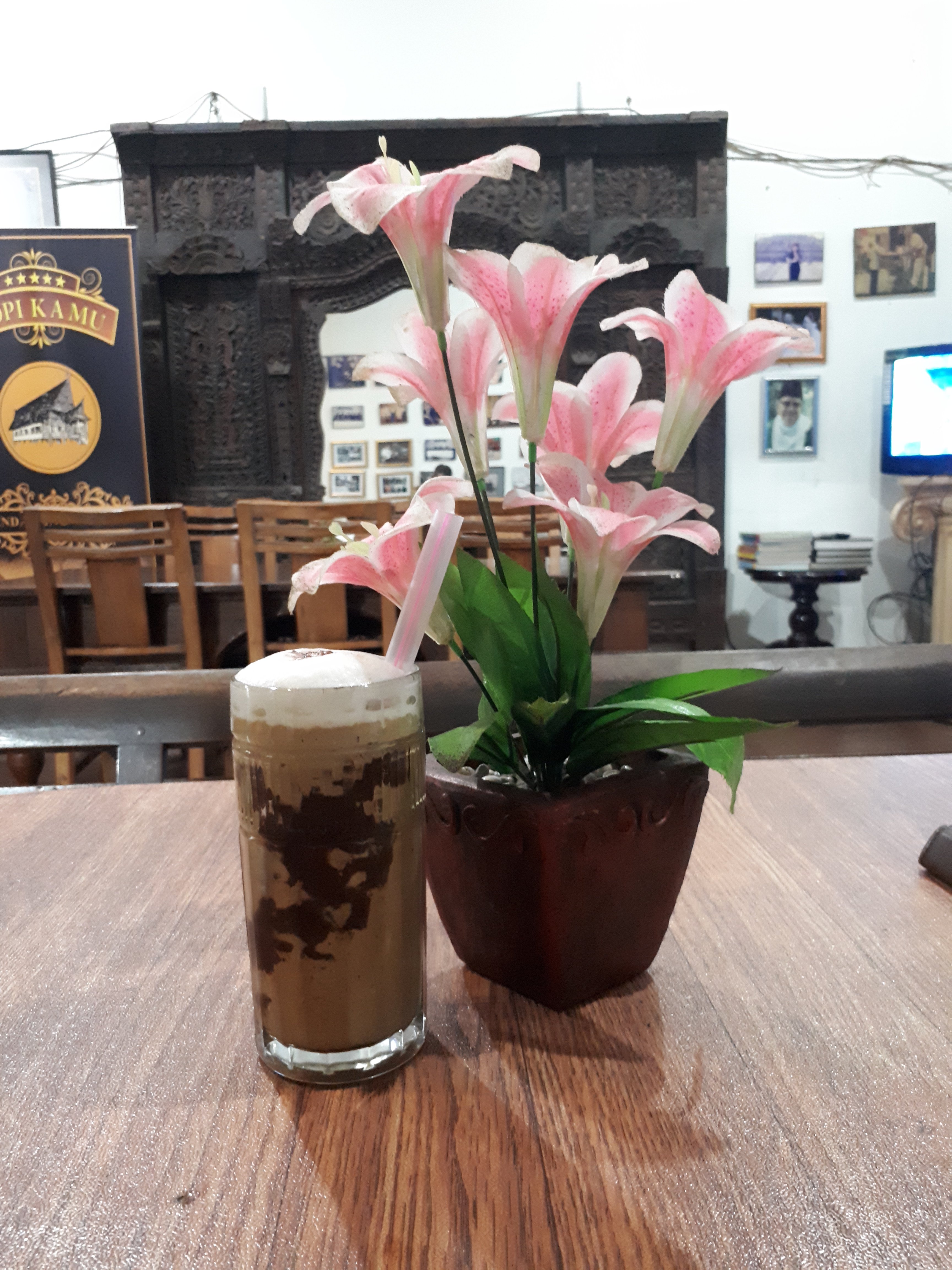 Coba ah… srupuuuut… seger, lembut dan rasa kopinya masih terasa… Lumayaaan.