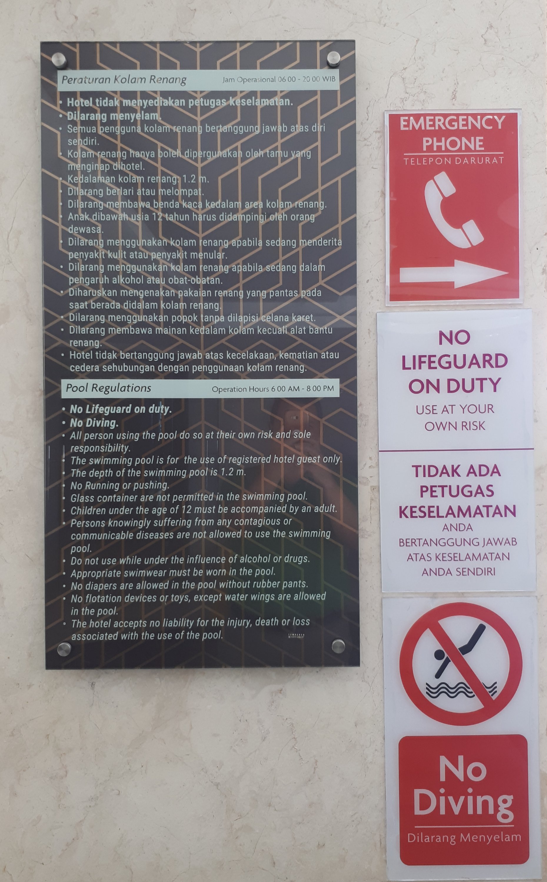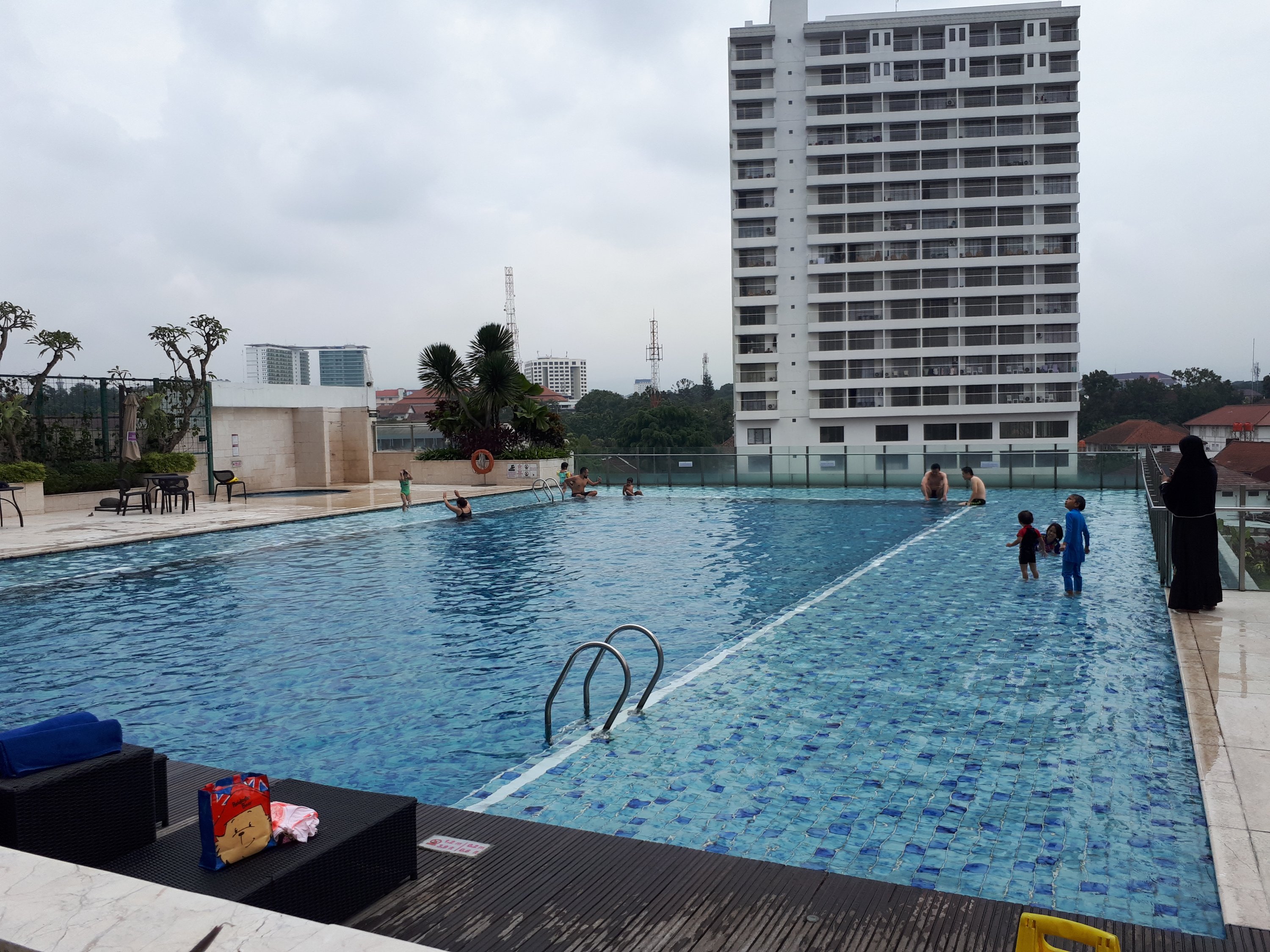 Demi memuaskan hasrat kekolamrenangan maka diputuskan saja menggunakan celana renang tapi berbalut celana panjang dan kaos kerah. Jadi jika tidak dimulai renangnya bisa lannut beredar sejenak untuk kembali ke kamar yang sudah menanti direbahi.