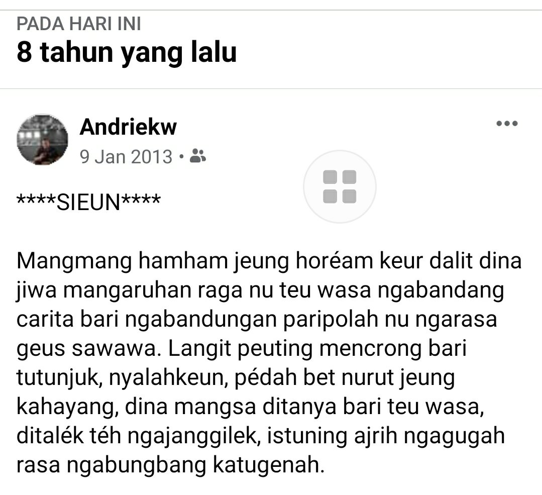 Catatan : Ini adalah cerita fiksi berbahasa sunda dengan sebutan FBS (fiksimini basa sunda). Ditulis dengan kumpulan kata dan maksimal di 150 kata. Tidak percaya? Silahkan hitung saja kata per katanya. Selamat menghitung. Terima kasih (AKW).