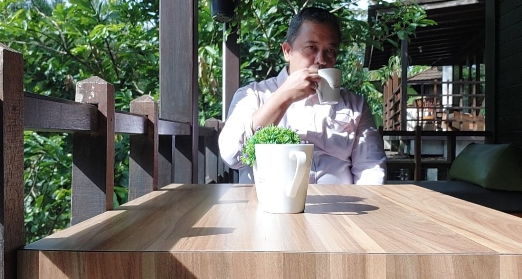 Sruput lagi, nikmat pisan. Kopi trubruk sajian villa hotel ini ternyata lumayan juga. Meskipun tidak tahu merknya tapi dari keharuman yang hadir, ada standar kopi yang dipegang sehingga mampu menghadirkan rasa yang lumayan. Alhamdulillah.