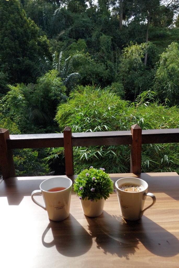 Melengkapi moodboster pagi ini tentu tak lupa kombinasi sajian minuman yang saling mempengaruhi. Secangkir teh yang harum berdampingan dengan secangkir kohitala (kopi hitam tanpa gula) dibuat dan disajikan agar berjajar berdampingan diatas meja kayu di balkon villa yang begitu akrab dengan suasana alam sekitarnya.