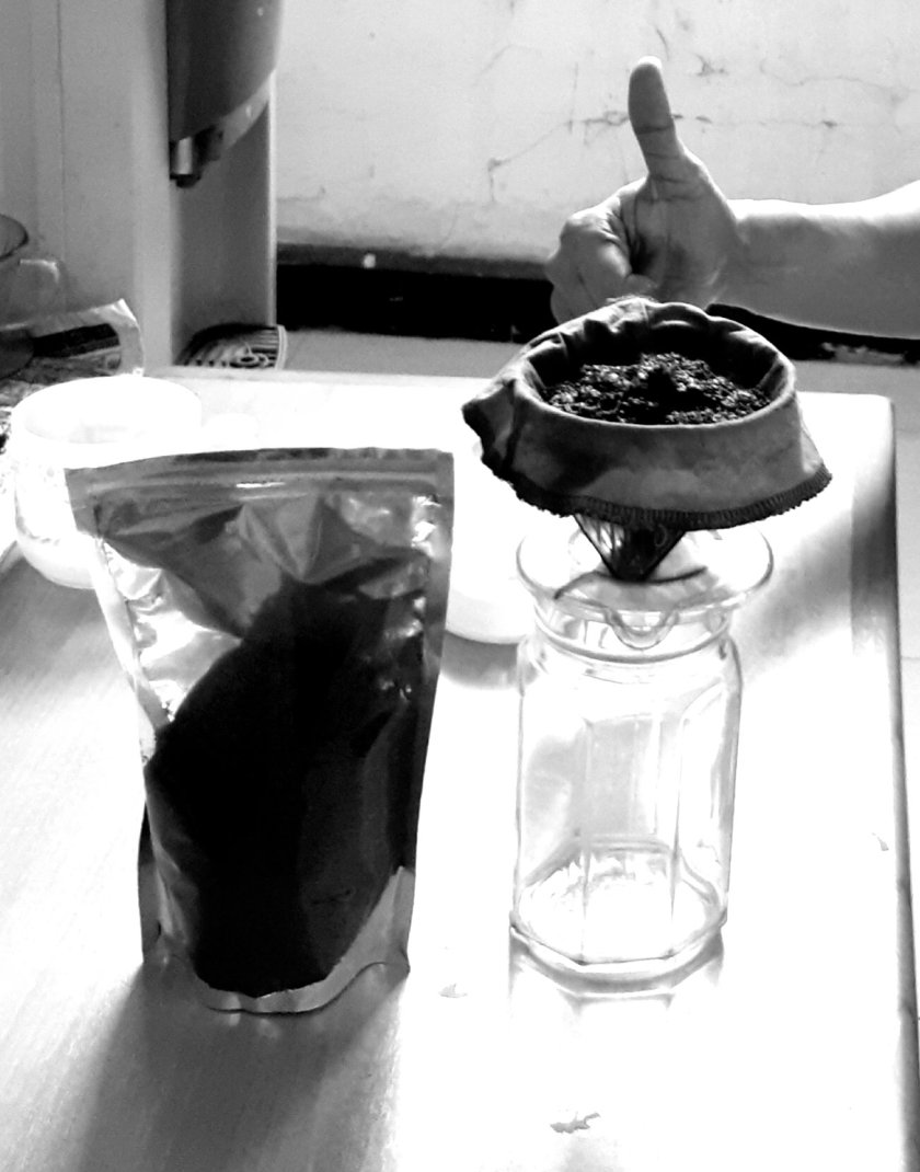 Si Kecil cantik melonjak-lonjak girang, tangannya menyoel bubuk kopi yang sudah jadi.. langsung dimasukan ke mulutnya, “Mantapp.”