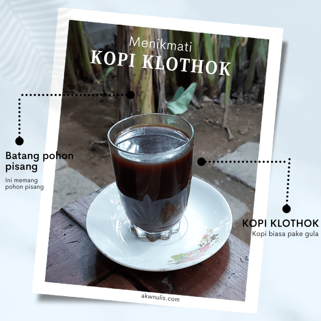 Pesan kopinya di tempat terpisah tapi kebetulan dekat dengan meja yang sudah diduduki tim pemburu meja, jadi begitu mudahnya memesan tambahan minumannya, bisa es jeruk atau jeruk es. Bagi yang penasaran apa itu kopi klotok maka ini penjelasan lengkapnya, klik saja KOPI KLOTOK. Sebuah tulisan singkatku beberapa tahun lalu menjelaskannya.