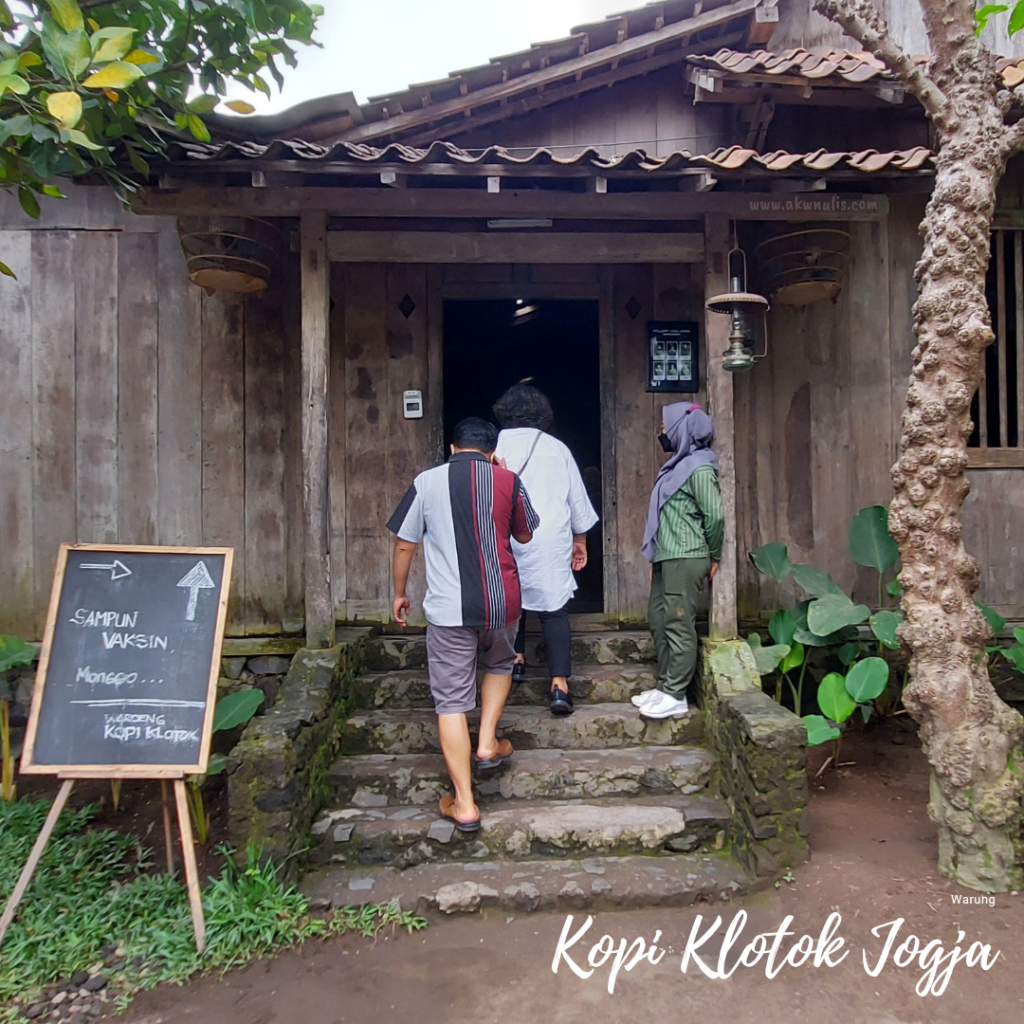 Dari celotehan dalam antrian dapat ditebak bahwa banyak pengantri bukan yang pertama datang kesini. Mereka terlihat senang dalam antrian dan bersiap mengambil giliran. Piring seng dipilih lalu ambil nasi sendiri dan memilih sayur lodeh yang tersedia. Pilihanku kali ini adalah sayur lodeh rawit karena butuh kepedasan untuk melengkapi cucuran keringat ini ditambah sambel dadaknya dan telur dadar khas rumah makan ini serta yang tak kalah pentingnya adalah sajian kopi sederhana yang menjadi judul rumah makan beken ini, rumah makan KOPI KLOTOK KALIURANG.